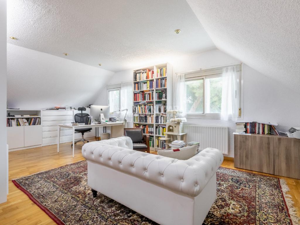 En esta zona contamos con acceso directo al garaje, un aseo, un despacho muy luminoso, una cocina independiente completamente equipada de SCHMIDT y un gran salón con chimenea, que destaca por sus numerosos armarios, lo que garantiza la capacidad de almacenamiento.