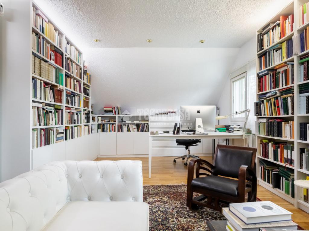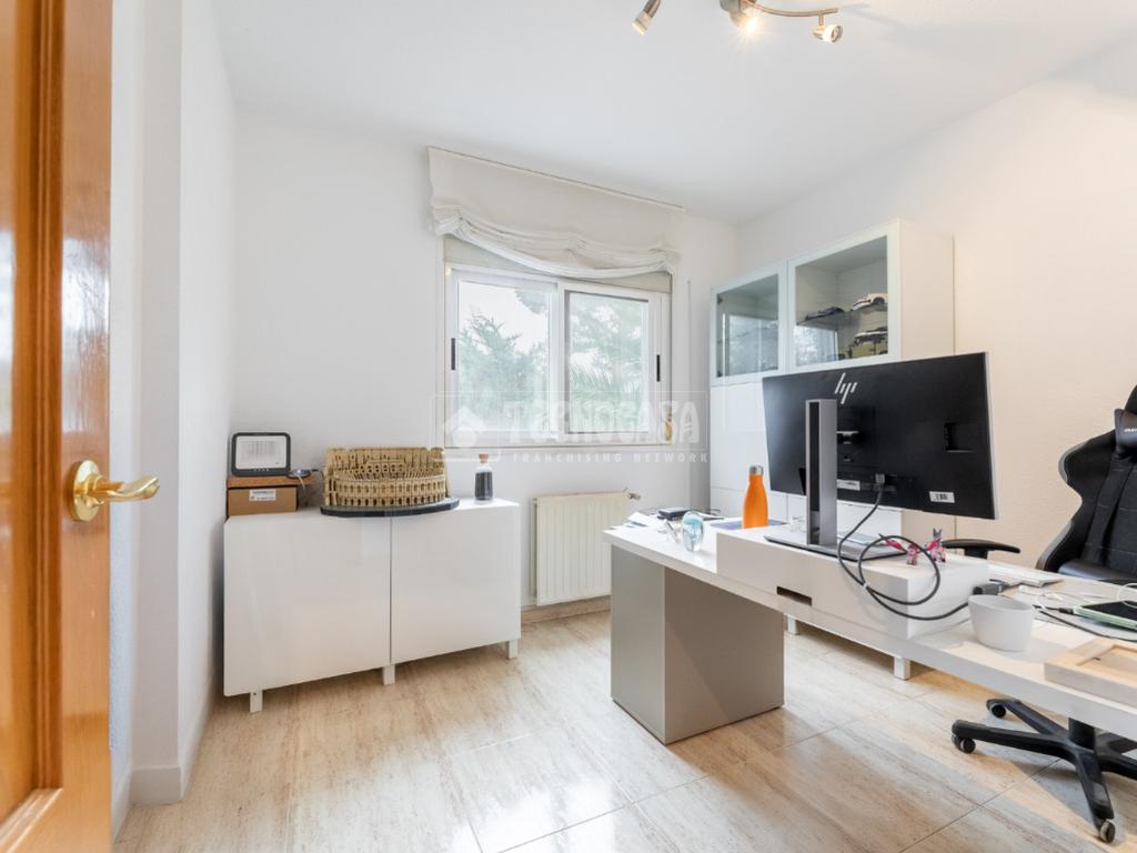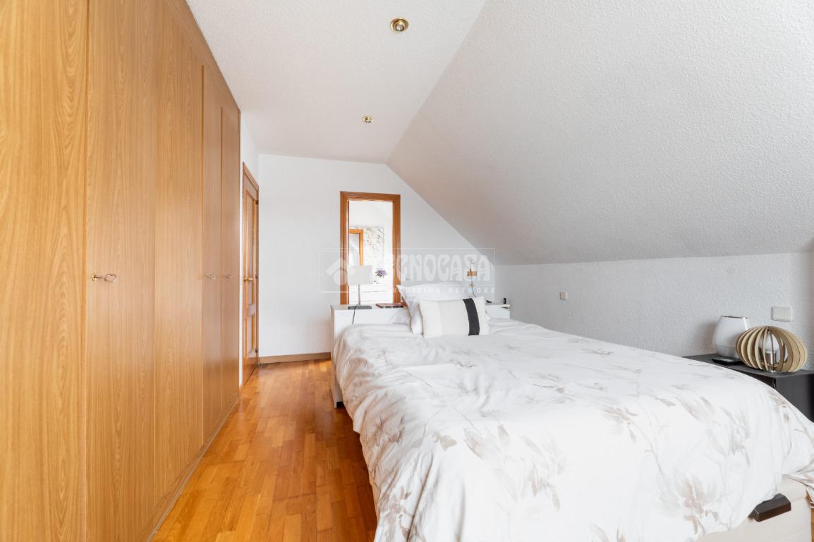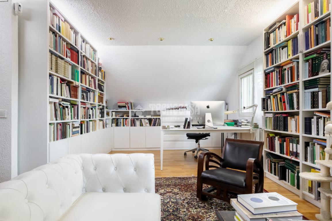 En la segunda planta encontramos tres dormitorios, uno de ellos el principal, con baño en suite. Actualmente, uno de los dormitorios está destinado a zona de despacho, destacando por su gran amplitud y luminosidad, ya que originalmente eran dos dormitorios. Esta planta se completa con otro cuarto de baño completo.