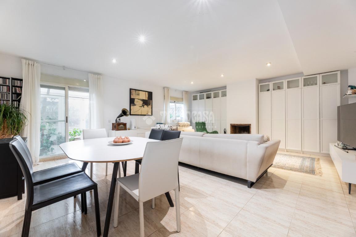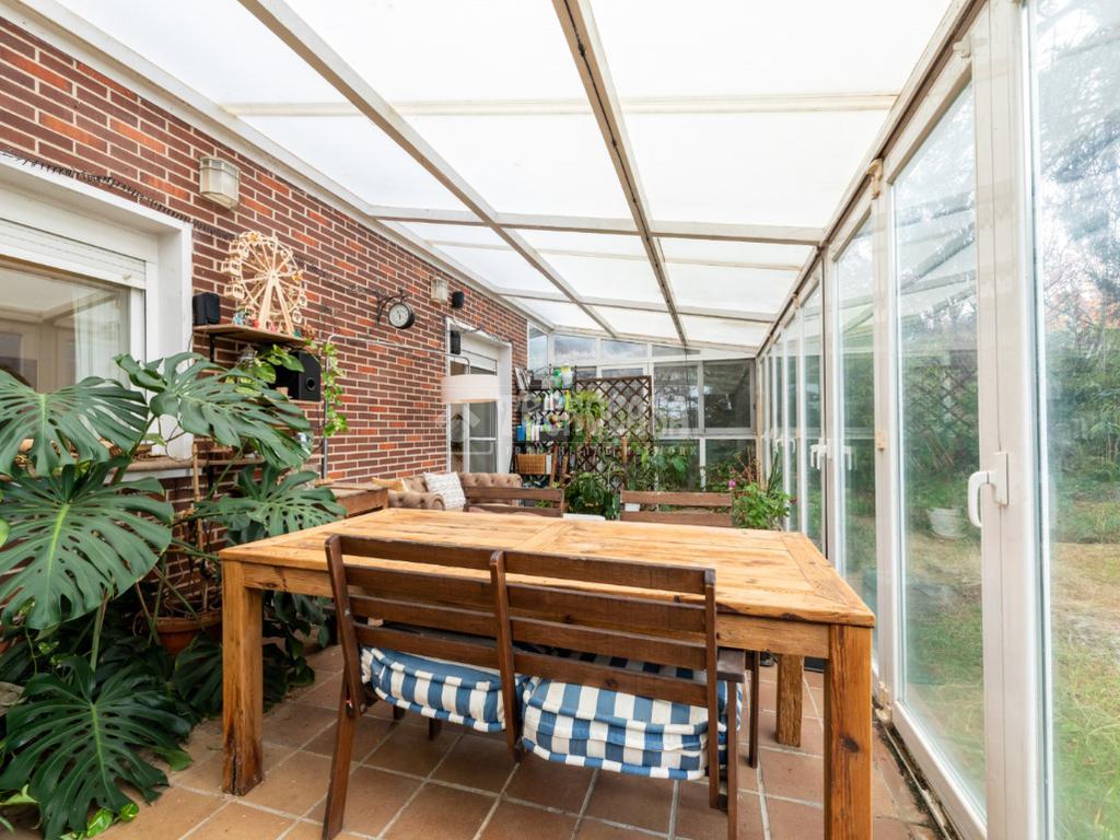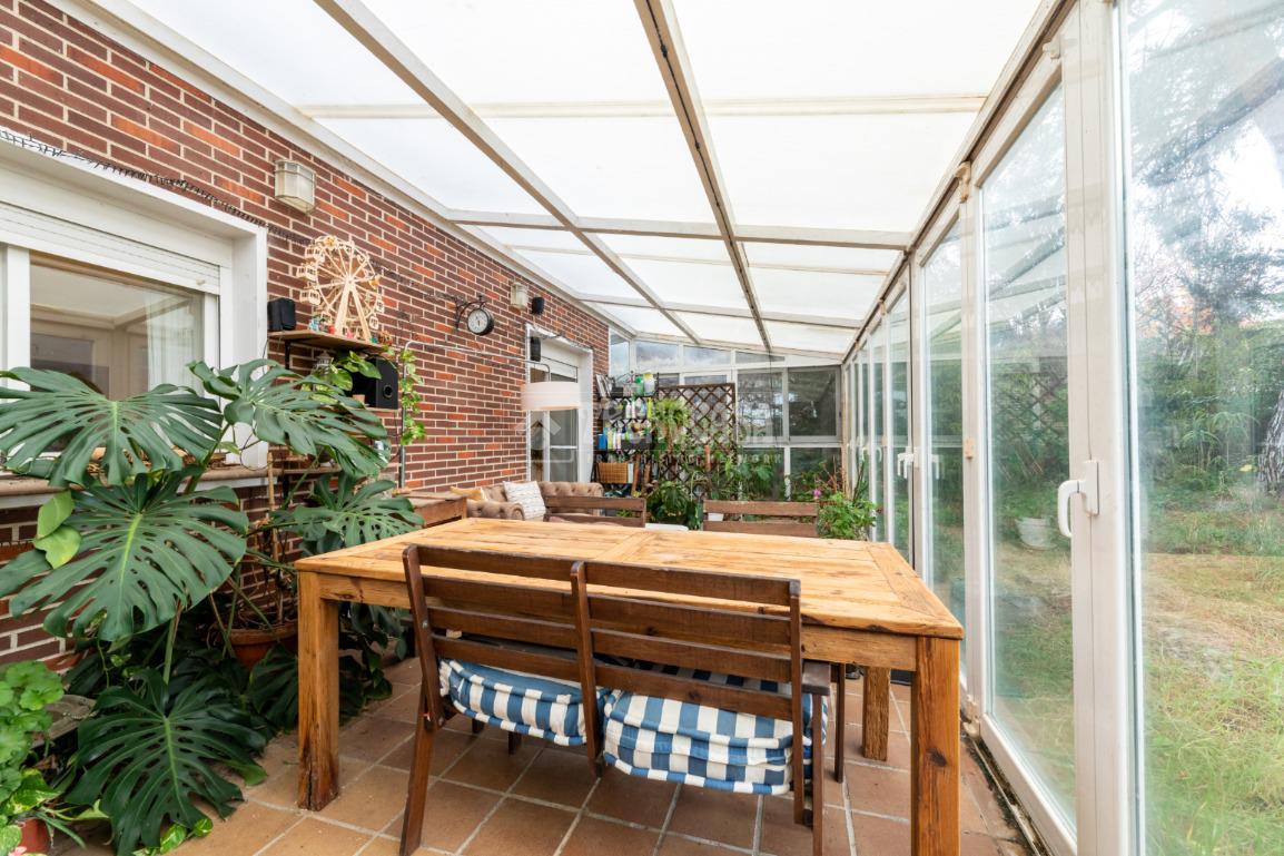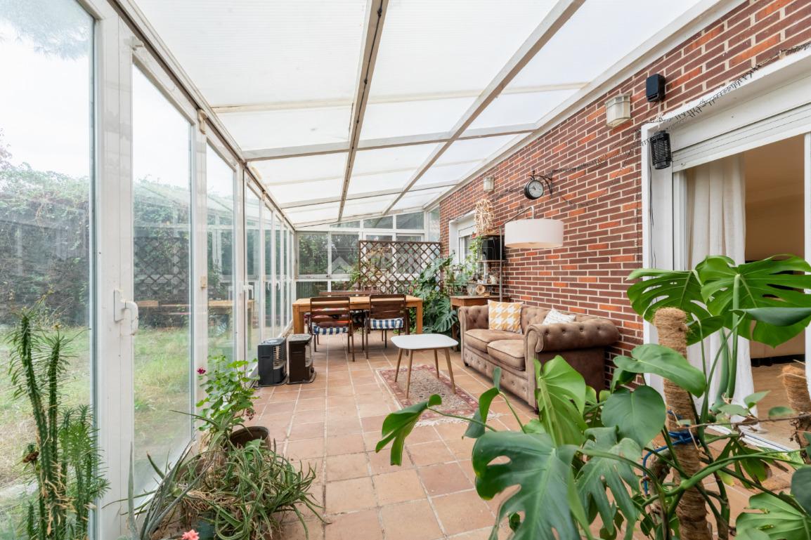 Desde el salón, salimos directamente a una terraza acristalada que da salida al espectacular jardín, en el que disfrutar de la naturaleza y la piscina, de 48 metros cúbicos y 8x4.