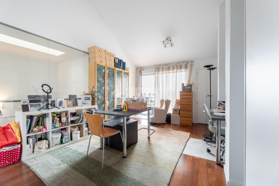 BUHARDILLA: La buhardilla destaca por su espacio diáfano, lo que la convierte en un lugar perfecto para trabajar desde casa o utilizar como sala de juegos u ocio. Además, dispone de un amplio trastero y armarios/vestidores de obra, aprovechando la caída del techo. Desde esta planta se accede a dos espectaculares terrazas/solárium con vistas impresionantes.
