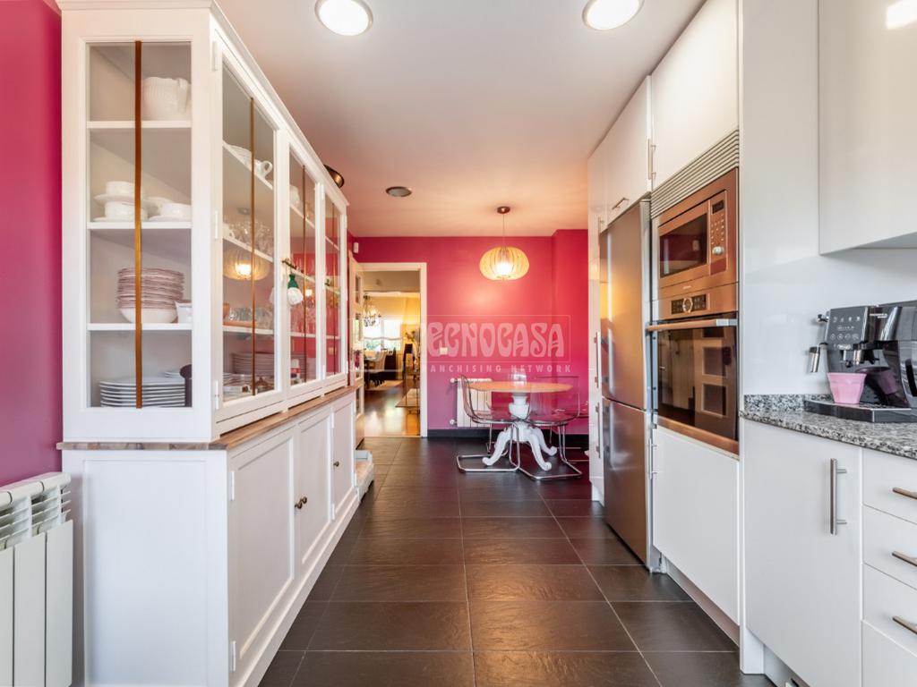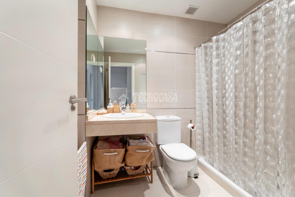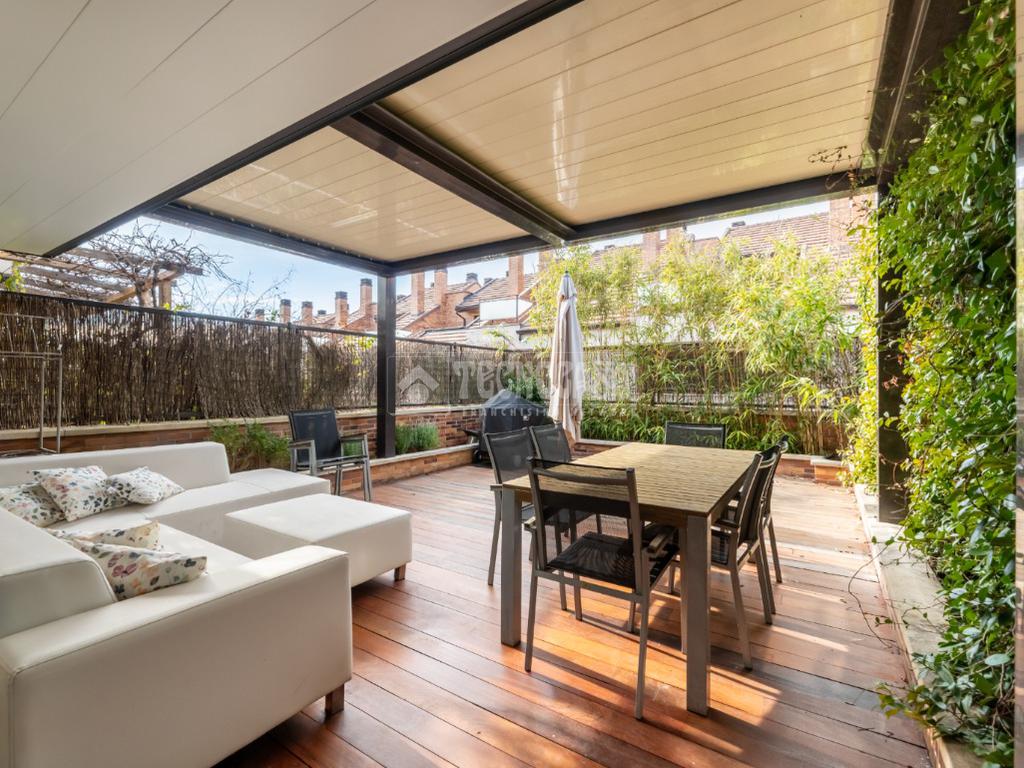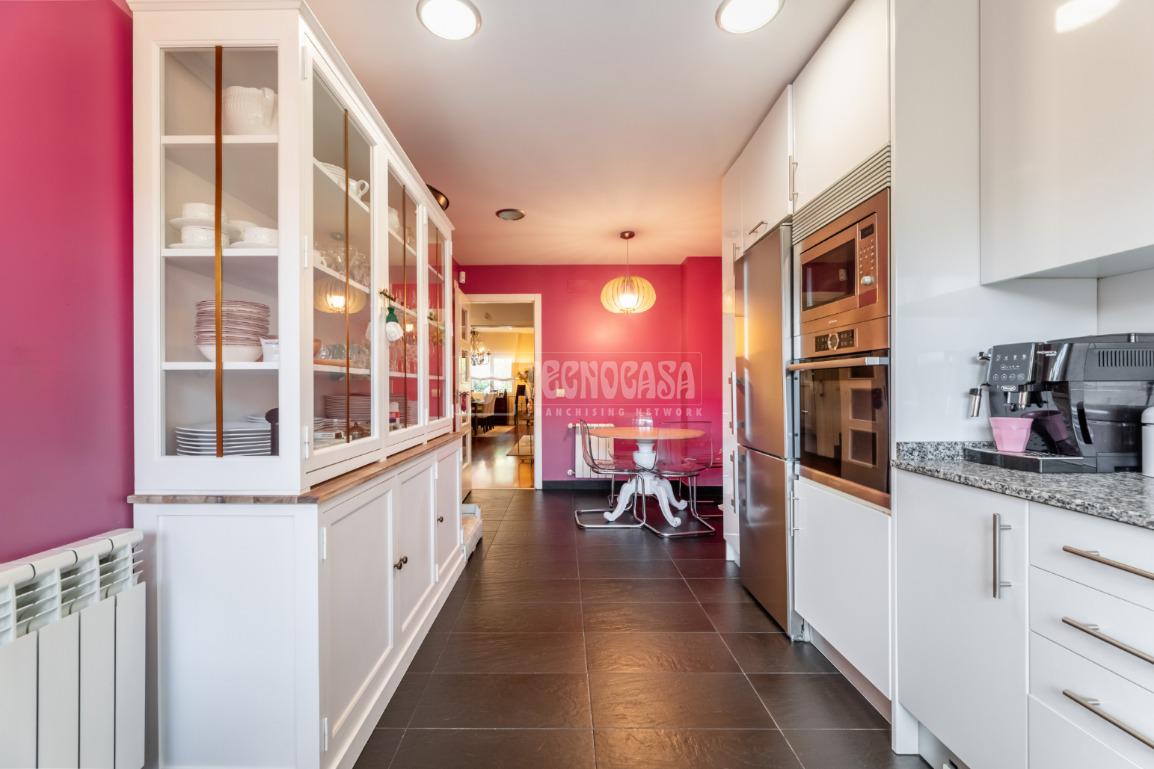 PLANTA PRIMERA: Al acceder a la vivienda, nos recibe un cómodo hall que destaca por su amplitud y privacidad. Dispone de armario empotrado de gran capacidad. Desde aquí accedemos, a través de una puerta corredera, a un pasillo que distribuye las diferentes estancias. La cocina es luminosa, funcional y moderna, y se encuentra en un estado impecable. Destaca por su gran tamaño y por ofrecer espacio suficiente para una mesa de comedor. El salón-comedor, reformado para ganar amplitud, presenta una forma cuadrada que facilita la distribución del mobiliario, permitiendo organizar cómodamente la zona de estar y el área de comedor según preferencias. Cuenta con grandes ventanales que aportan abundante luz natural durante todo el día. Desde el salón se accede directamente al patio, reformado con tarima de madera de ipé y una fantástica pérgola bioclimática, que permite disfrutar de la terraza incluso en días de lluvia, creando un entorno ideal para comidas y cenas al aire libre en familia. En esta misma planta disponemos de una práctica despensa y un aseo.