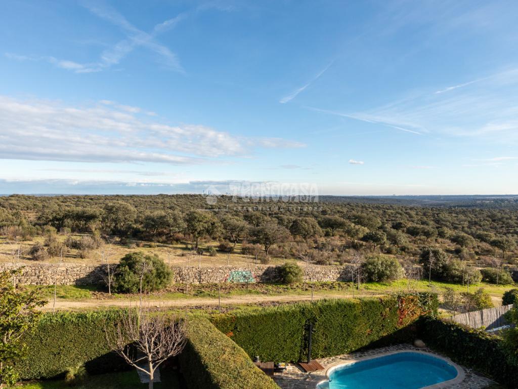 Nos encontramos un luminoso chalet con preciosas zonas verdes alrededor de la finca, amplio porche acristalado y excelentes vistas desde sus múltiples alturas.