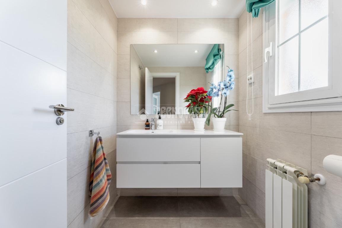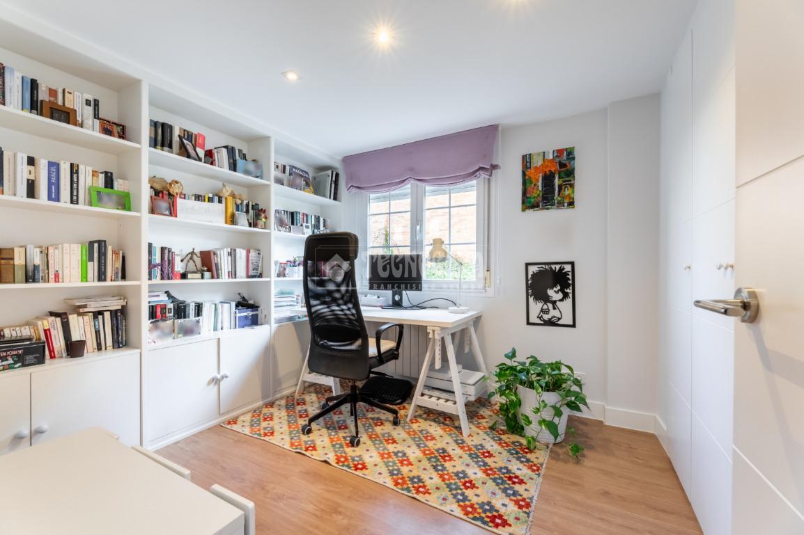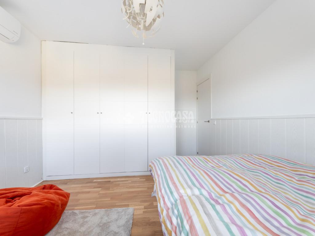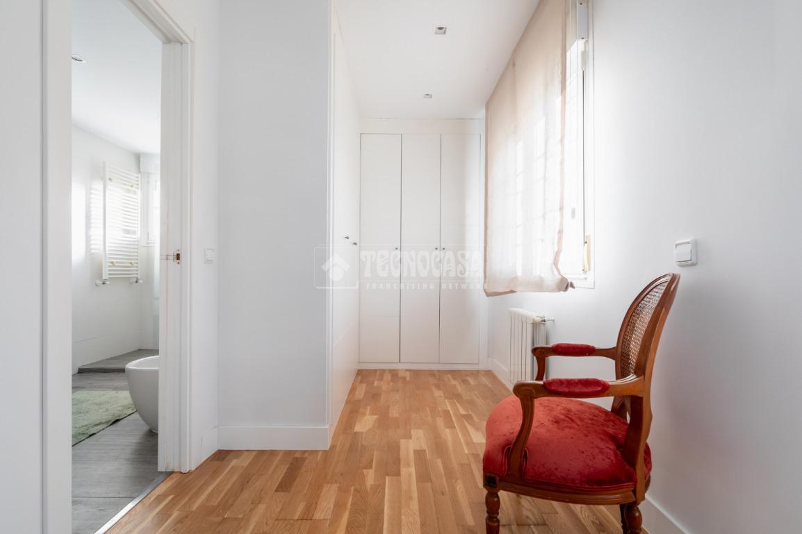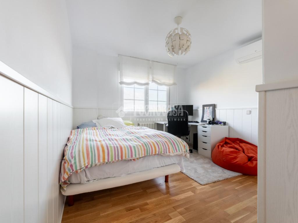 En la última planta de la casa tenemos la habitación principal con su cuarto de baño en suite (plato de ducha, bañera-jacuzzi, zona de WC) y espacio de vestidor. Habitación muy luminosa por sus múltiples ventanas. Además cuenta con una habitación extra dedicada completamente a espacio de vestidor y tocador. Como extra, la vivienda cuenta con una zona de lavandería completamente equipada.