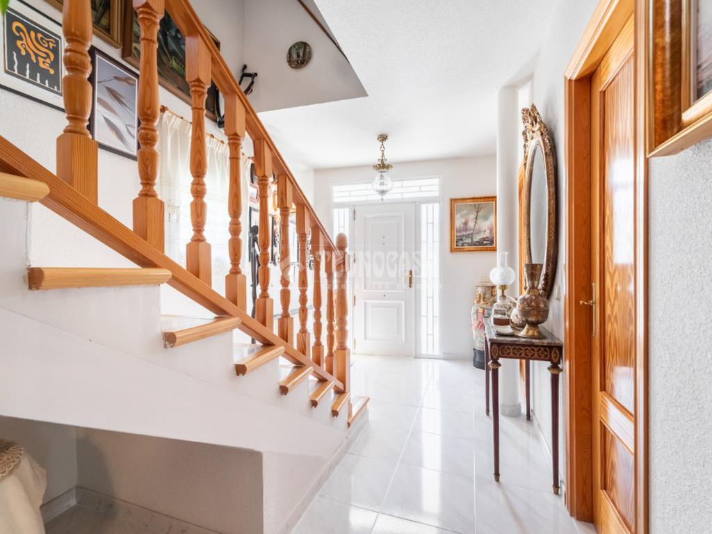 Nos encontramos un luminoso chalet de 396 m2 con preciosas zonas verdes alrededor de la finca, amplio porche y terraza, destacando por sus espectaculares vistas al Canto del Pico desde sus múltiples alturas.