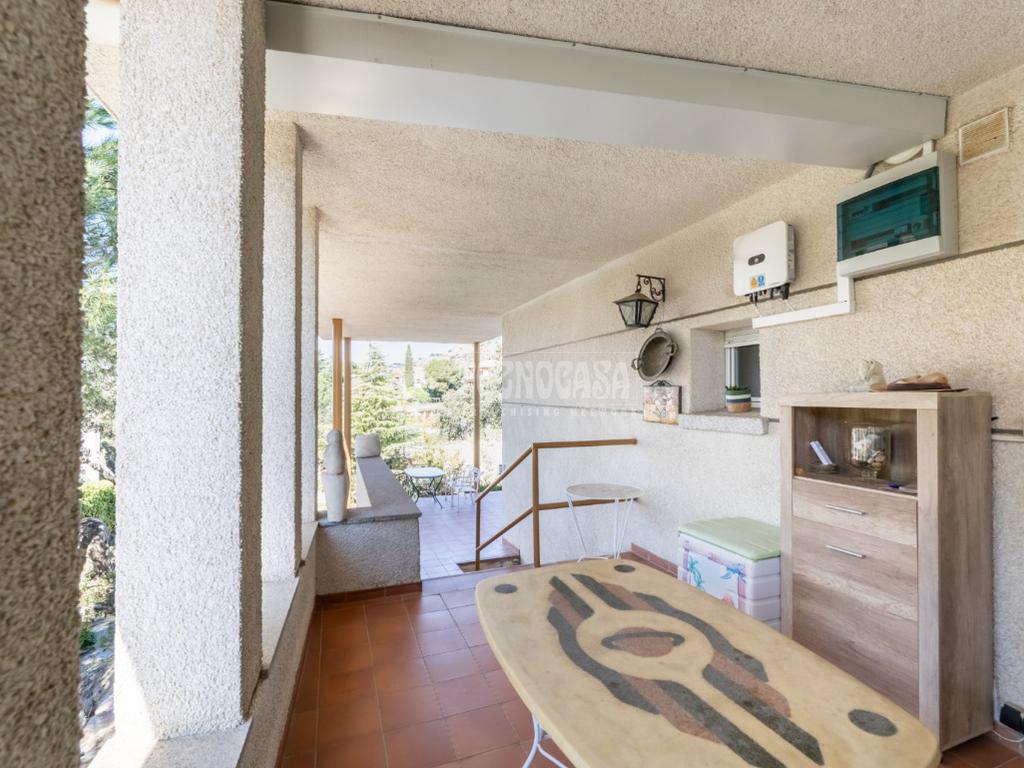 Desde la cocina accedemos a la parte trasera de la parcela, por una gran terraza-porche, perfecta para disfrutar de cenas y comidas al aire libre.