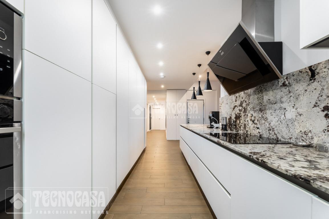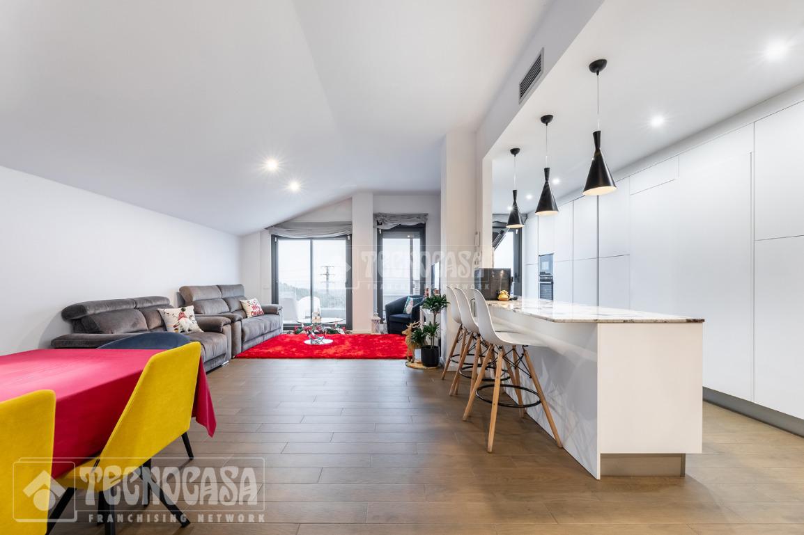 Al entrar, nos encontramos con un gran salón-comedor con cocina integrada estilo americana con amplia península, totalmente equipada. Un espacio muy cómodo y bien aprovechado que aporta amplitud y luz natural durante todo el día, con acceso directo a la terraza principal. Contamos con otra terraza de grandes dimensiones orientada al sur, con BBQ empotrada y zona de comedor.