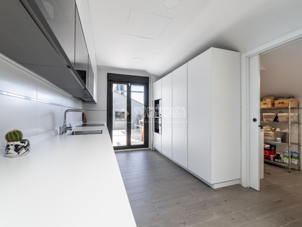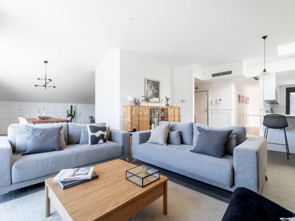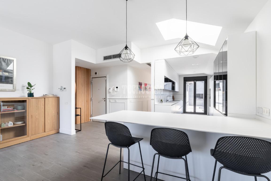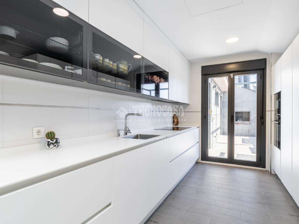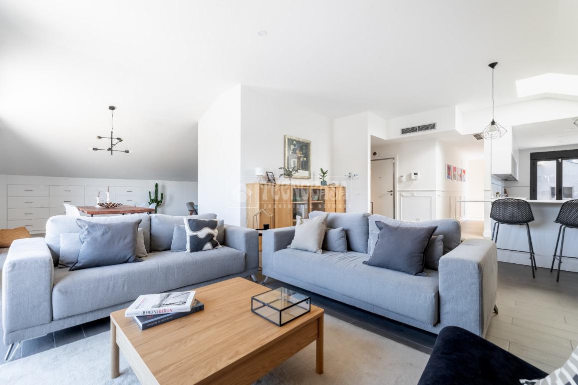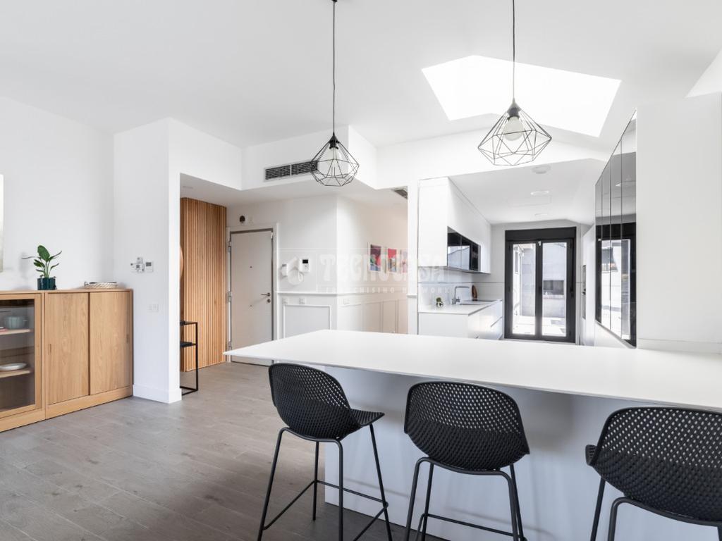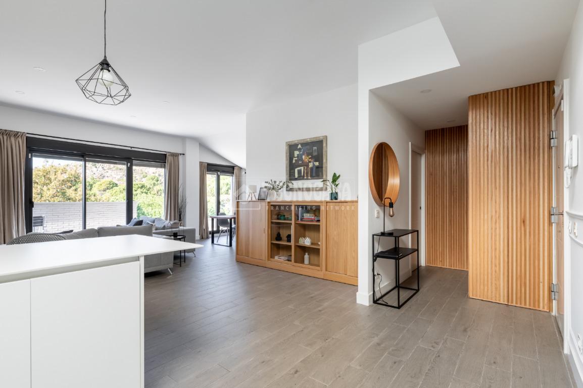 Al entrar, nos encontramos con un gran salón-comedor de casi 90m2 con mucha luz natural, con la cocina integrada estilo americana totalmente equipada en altas calidades con todos los electrodomésticos NEFF y una gran despensa con zona de lavandería.