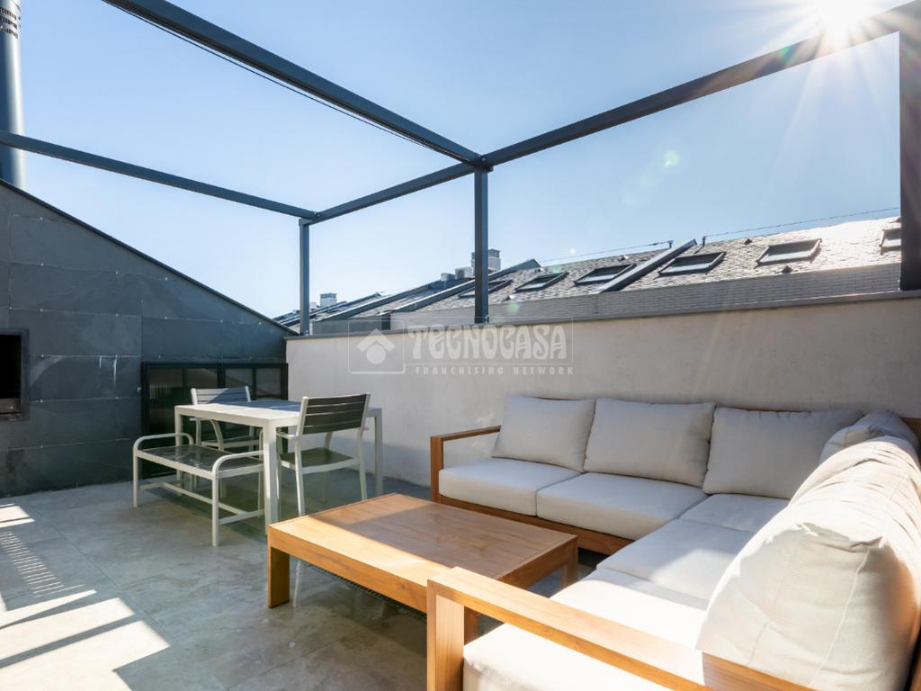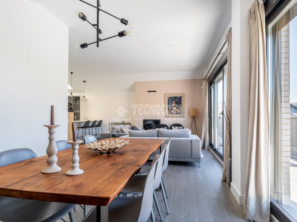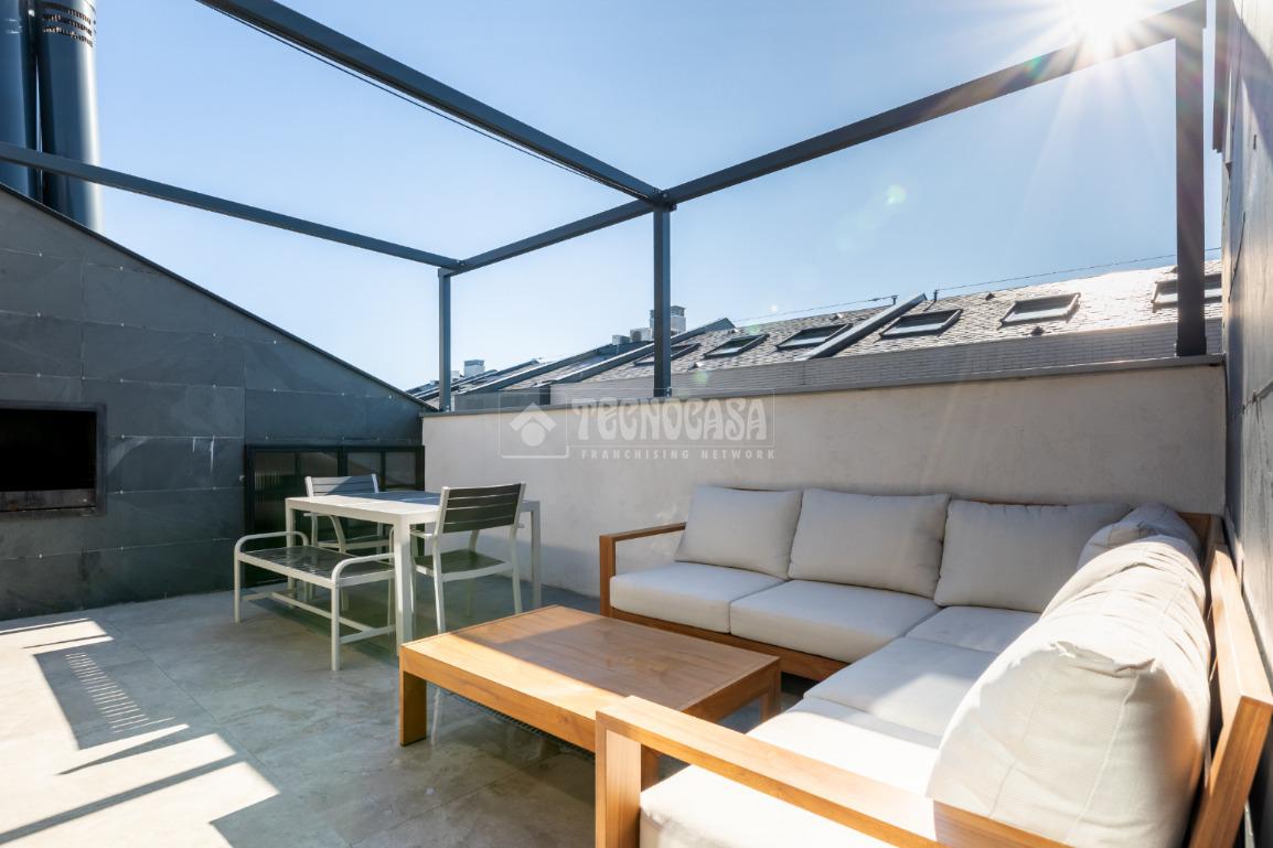 Un espacio muy cómodo y bien aprovechado que aporta amplitud y luz natural durante todo el día, con acceso directo a la terraza principal orientada al SUR, la cual cuenta con BBQ empotrada, zona de comedor, chill-out y zona de leñero. Contamos con otra terraza de grandes dimensiones con vistas al monte. Disponen de pérgola y toldo automático.