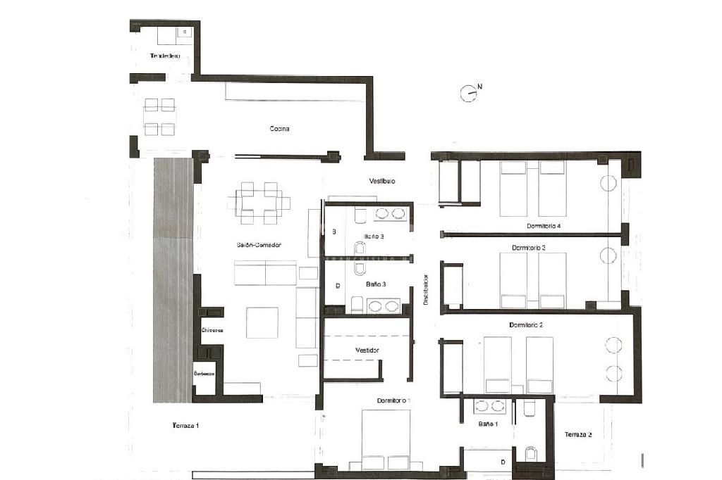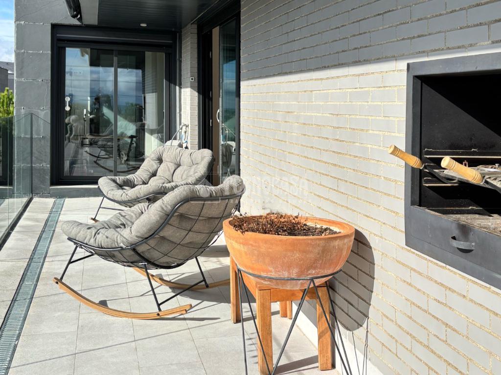 Incluye cerramiento de cortina de cristal en una de las terrazas, con toma de agua fría y caliente. La terraza principal incorpora barbacoa empotrada y toldos automáticos con sensores de sol y viento.