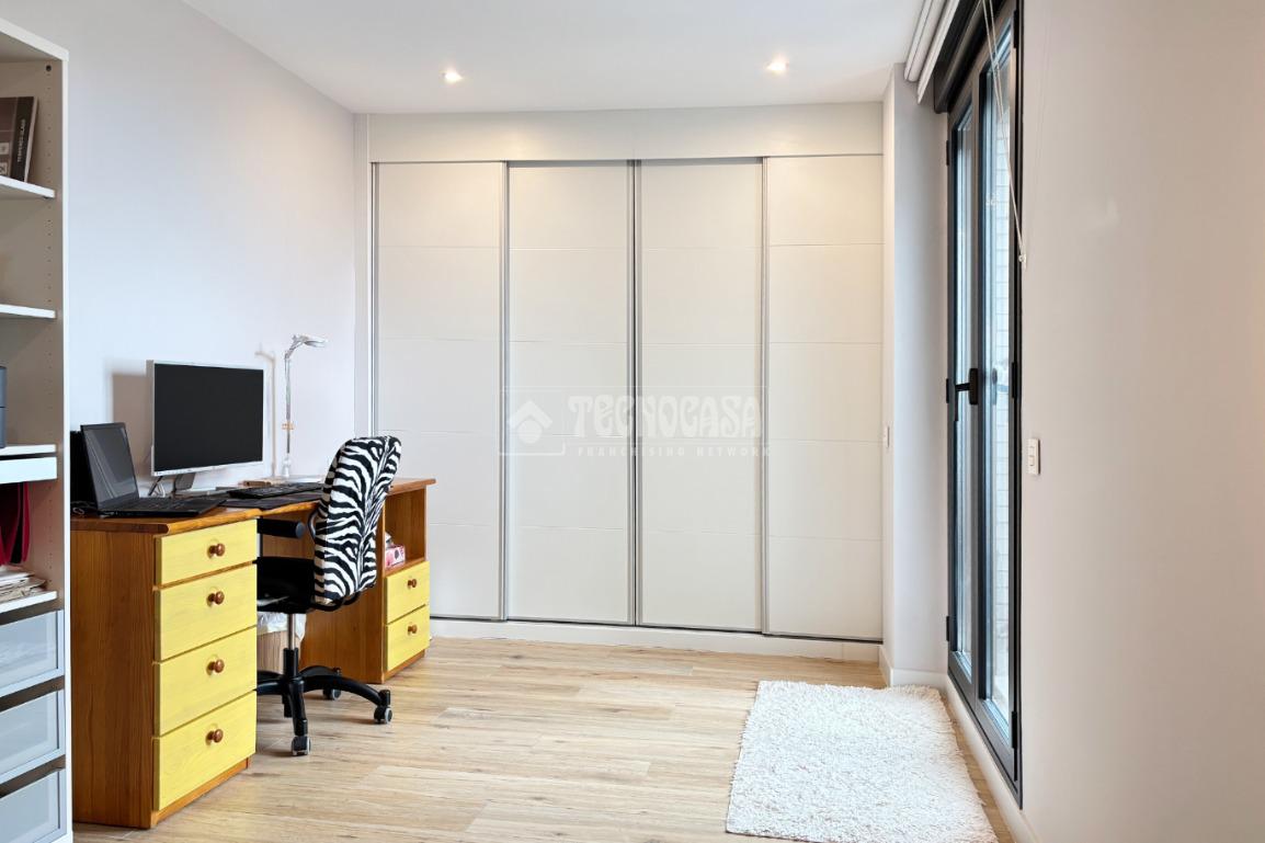 La vivienda destaca por su amplio salón con cocina integrada, office independiente, lavadero, y una distribución práctica y muy luminosa. Dispone de 3 dormitorios espaciosos, 2 baños completos y un amplio aseo, el dormitorio principal es en suite con vestidor y baño privado. Uno de los dormitorios permite recuperar una cuarta habitación con una sencilla división.