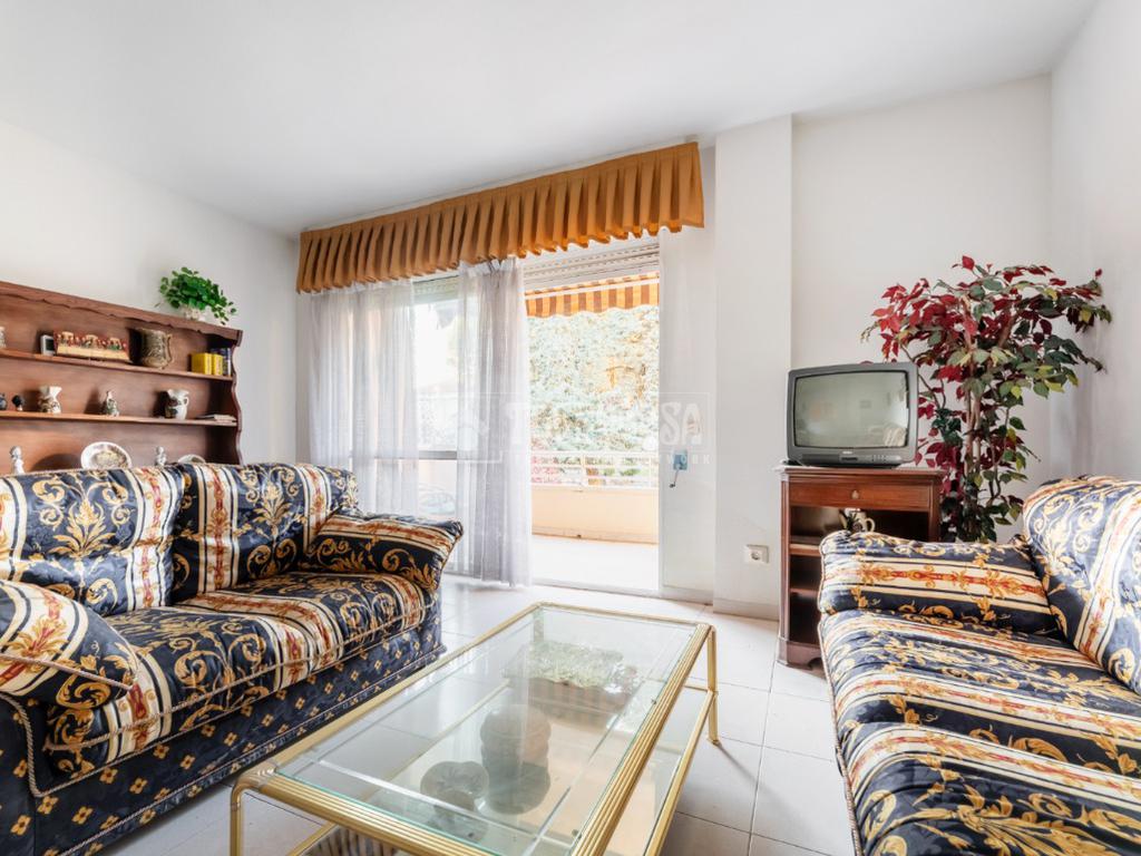 A la derecha encontramos un gran salón de planta cuadrada, muy luminoso gracias a un ventanal que da acceso a una espaciosa terraza con vistas a las zonas verdes interiores de la urbanización. Un espacio perfecto para disfrutar de comidas y cenas al aire libre.