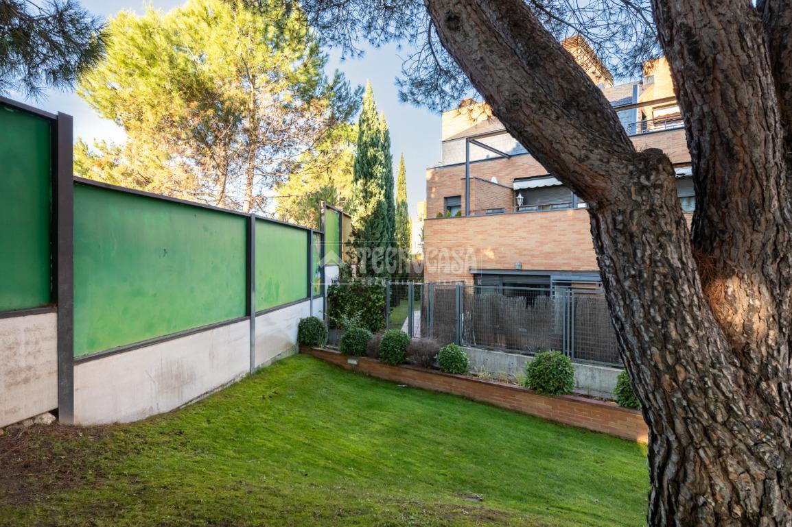 Bajo de esquina con amplio jardín en urbanización con piscina y gimnasio en Torrelodones